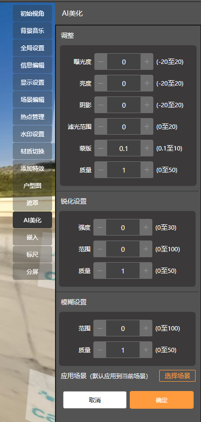 1.全景美化-即一键调整全景图片的参数,具体如下: